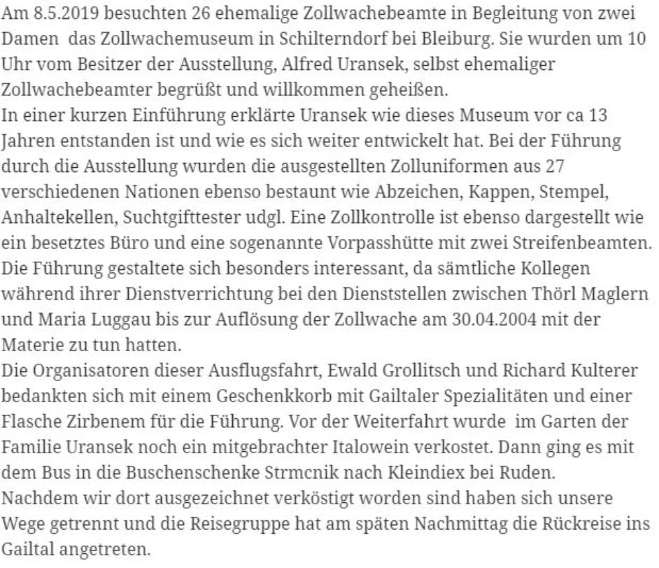 Ehemalige Zollwachebeamte aus dem Gailtal besuchten das Museum